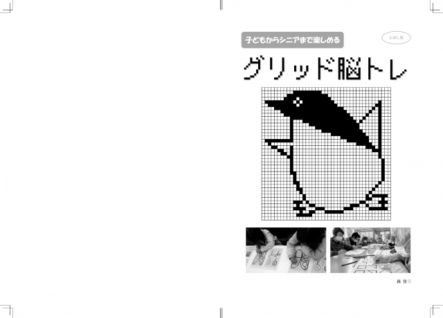 グリッド脳トレは、子どもからシニアまで楽しめるお絵描きトレーニングです。 方眼紙のマス目を塗りつぶして、絵や模様を描きます。 白い紙とは違い、マス目があるので、絵が苦手でも自然と手が動きます。 グリッド脳トレで大切にしているのは、「考えること」よりも「感じること」。 「正しさ」よりも「あなたらしさ」です。 うまく描けなくても、まったく問題ありません。 間違えても、気にしなくて大丈夫です。 これは、パズルやドリルのように正解や点数を求めるものではないからです。 イメージの世界に遊び、自由にのびのびと作品を生み出してみましょう。 それが、グリッド脳トレの目的です。 絵を描くことは、認知症の予防にも効果があるといわれています。 グリッド脳トレも、発想力や創造力をやさしく刺激しながら、心と脳を元気づけることが期待されています。 どうぞ、気軽な気持ちで始めてみてください。 あなただけのグリッド脳トレの時間を、ゆっくりと楽しんでいただければ幸いです。