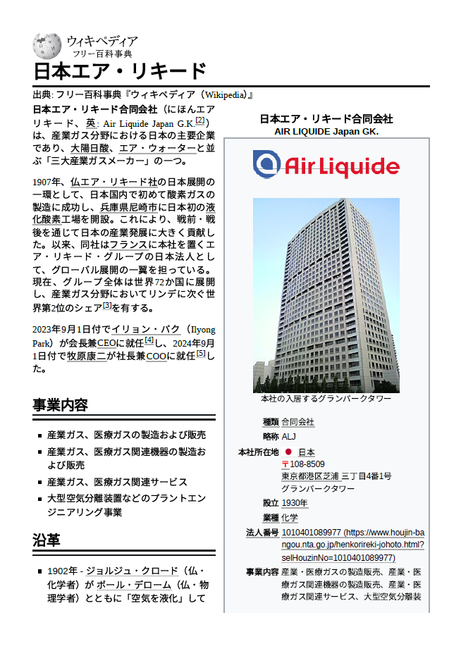日本エア・リキード@Wikipedia 2025.10.30版
