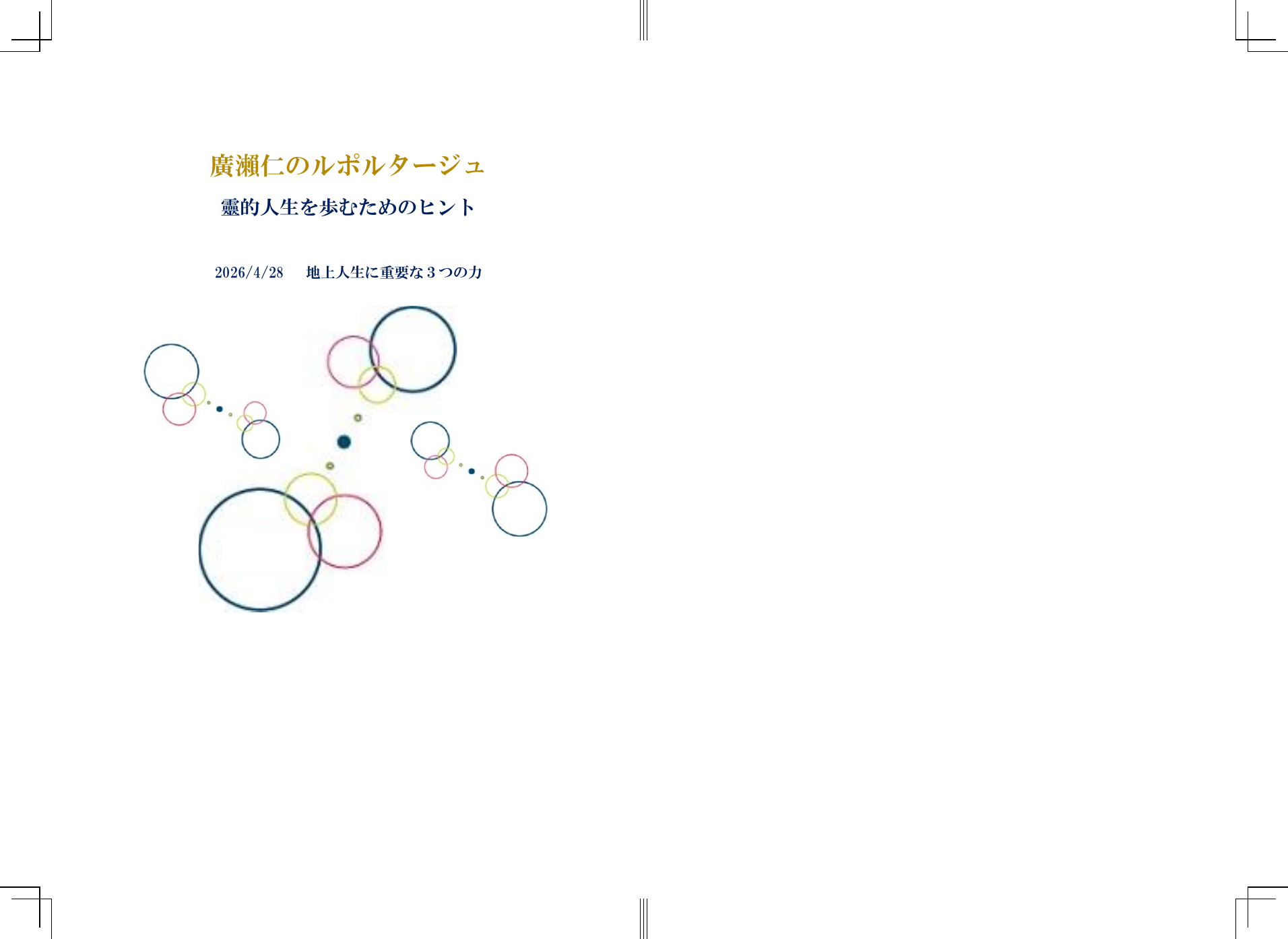 廣瀨仁のルポルタージュ 靈的人生を歩むためのヒント⑨